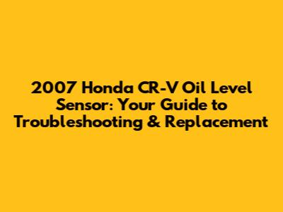 Hey there, fellow gearheads! If you're here, chances are your 2007 Honda CR-V is giving you a little trouble, specifically with its oil level sensor. Don't sweat it – we've all been there! This guide is designed to walk you through everything you need to know about this crucial little part, from understanding its function to diagnosing problems and, of course, replacing it if necessary. Let's dive in and get that CR-V running smoothly again, shall we?