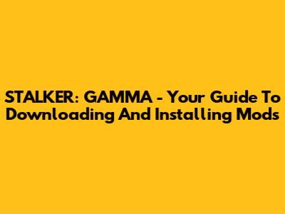 STALKER: GAMMA - Your Guide To Downloading And Installing Mods