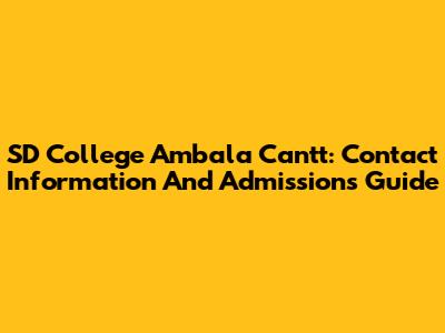 SD College Ambala Cantt: Contact Information And Admissions Guide