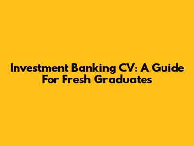Investment Banking CV: A Guide For Fresh Graduates