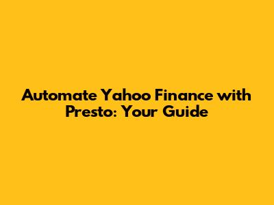 Hey there, finance enthusiasts and automation aficionados! Ever wished you could streamline your Yahoo Finance data analysis? Well, Presto automation for Yahoo Finance is like a secret weapon, and today, we're diving deep into how you can wield it. This guide is your friendly companion, designed to walk you through the process, even if you're new to the world of data automation. We'll break down the essentials, offer practical examples, and equip you with the knowledge to make informed financial decisions. Ready to supercharge your financial analysis? Let's jump in!