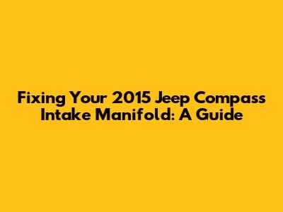 Fixing Your 2015 Jeep Compass Intake Manifold: A Guide