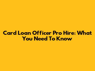 Card Loan Officer Pro Hire: What You Need To Know