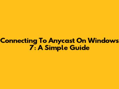 Connecting To Anycast On Windows 7: A Simple Guide