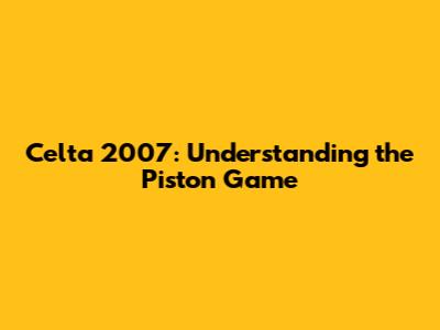 Conclusion: Mastering the Celta 2007 Piston Game