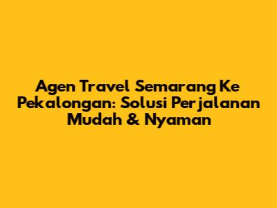 Agen Travel Semarang Ke Pekalongan: Solusi Perjalanan Mudah & Nyaman