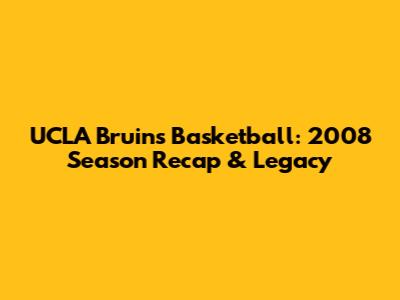 UCLA Bruins Basketball: 2008 Season Recap & Legacy