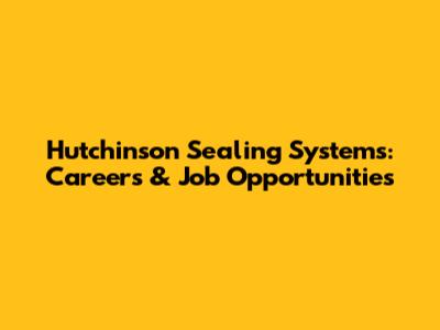 Hutchinson Sealing Systems: Careers & Job Opportunities