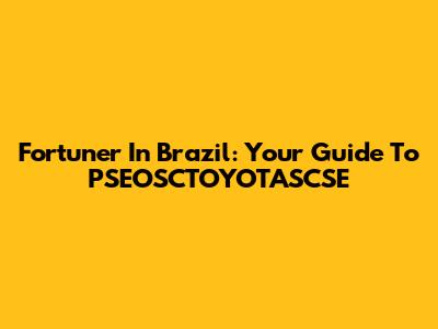 Fortuner In Brazil: Your Guide To PSEOSCTOYOTASCSE