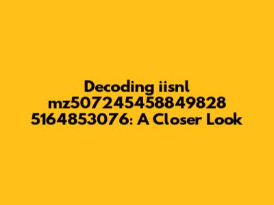 In summary, the string iisnl mz507245458849828 5164853076 is a complex alphanumeric identifier that could serve various purposes, such as a serial number, transaction ID, license key, or database identifier. Deciphering its exact meaning requires understanding the context in which it is used and potentially consulting relevant documentation or technical support. By breaking down the string into its component parts and considering possible interpretations, one can gain valuable insights into its function and significance. Remember to always consider the context and utilize available resources to accurately interpret such strings and unlock their hidden meanings. Hopefully, this has shed some light on how to approach these types of alphanumeric codes. Good luck with your future decoding adventures!