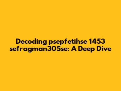 Let's break down this intriguing string of characters: "psepfetihse 1453 sefragman305se." At first glance, it might seem like gibberish, but with a little investigation, we can unravel its potential meaning and significance. Maybe you stumbled upon this randomly, or perhaps it's part of a larger puzzle. Whatever the reason, let’s dive in and see what we can find.