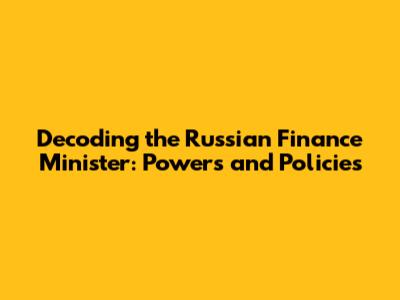 The Role and Responsibilities of the Russian Finance Minister