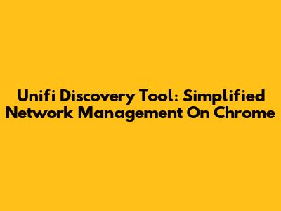 Unifi Discovery Tool: Simplified Network Management On Chrome