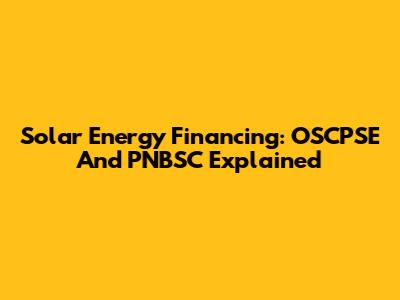 Solar Energy Financing: OSCPSE And PNBSC Explained