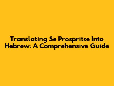Translating "Se Prospritse" Into Hebrew: A Comprehensive Guide