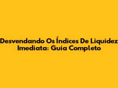 Desvendando Os Índices De Liquidez Imediata: Guia Completo
