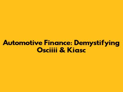 Automotive Finance: Demystifying Osciiii & Kiasc