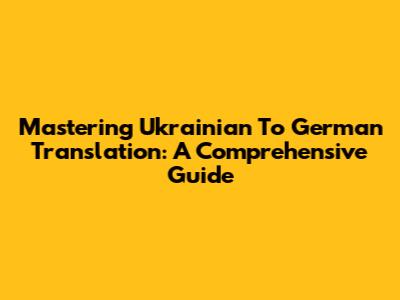 Mastering Ukrainian To German Translation: A Comprehensive Guide