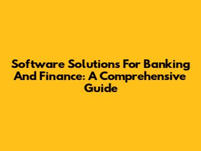 Software Solutions For Banking And Finance: A Comprehensive Guide