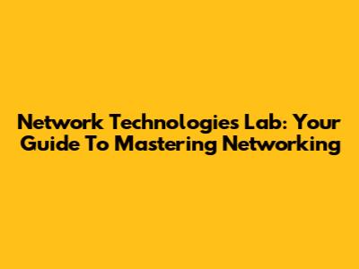 Network Technologies Lab: Your Guide To Mastering Networking