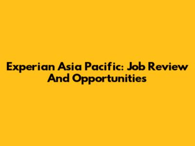 Experian Asia Pacific: Job Review And Opportunities