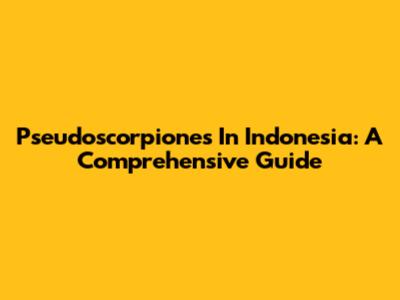 Pseudoscorpiones In Indonesia: A Comprehensive Guide