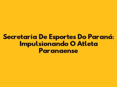 Secretaria De Esportes Do Paraná: Impulsionando O Atleta Paranaense