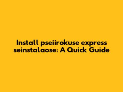 Hey guys! Today, we're diving into how to install pseiirokuse express seinstalaose. I know, the name might sound a bit intimidating, but trust me, the process is pretty straightforward once you get the hang of it. We'll break it down into simple, manageable steps, so you can get everything up and running smoothly. Whether you're a seasoned tech guru or just starting out, this guide is designed to help you navigate the installation process with ease. We’ll cover everything from the initial setup to troubleshooting common issues, ensuring you have a hassle-free experience. So, grab your favorite beverage, get comfortable, and let's get started!