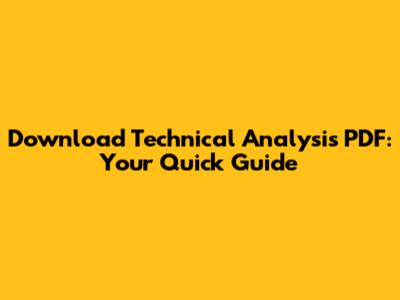 Download Technical Analysis PDF: Your Quick Guide