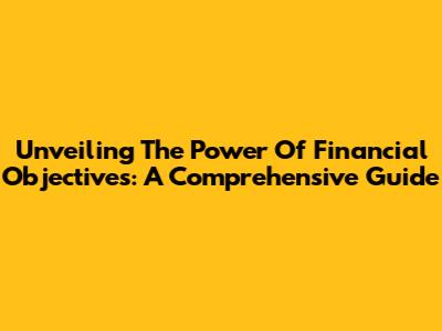 Unveiling The Power Of Financial Objectives: A Comprehensive Guide