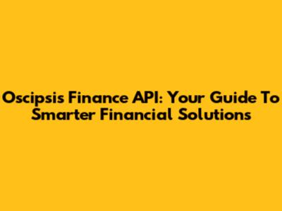 Oscipsi's Finance API: Your Guide To Smarter Financial Solutions