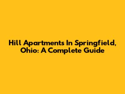 Hill Apartments In Springfield, Ohio: A Complete Guide