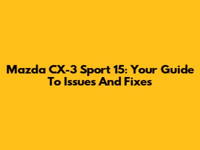 Mazda CX-3 Sport 15: Your Guide To Issues And Fixes