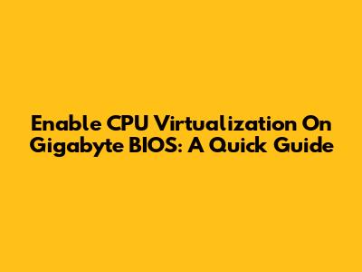 Enable CPU Virtualization On Gigabyte BIOS: A Quick Guide