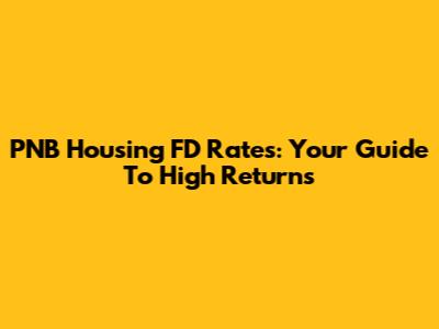 PNB Housing FD Rates: Your Guide To High Returns