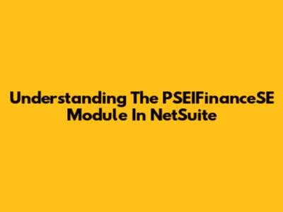 Understanding The PSEIFinanceSE Module In NetSuite