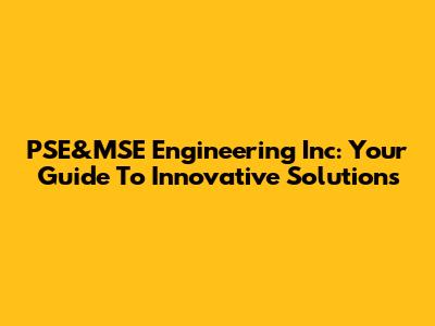 PSE&MSE Engineering Inc: Your Guide To Innovative Solutions
