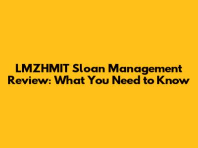 What Exactly is the LMZHMIT Sloan Management Review?