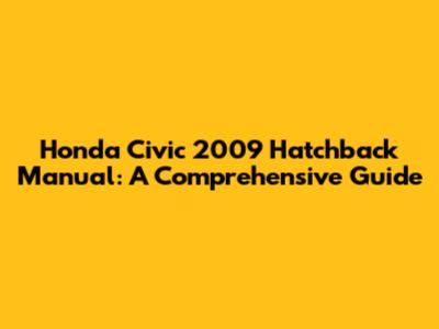 Honda Civic 2009 Hatchback Manual: A Comprehensive Guide