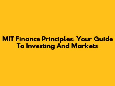 MIT Finance Principles: Your Guide To Investing And Markets