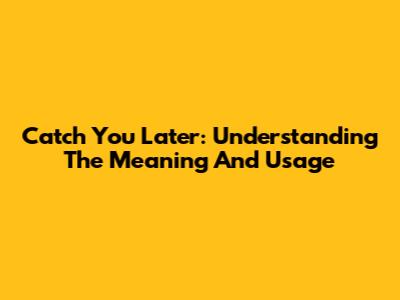 Catch You Later: Understanding The Meaning And Usage