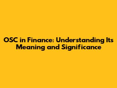 Hey guys! Ever stumbled upon the acronym OSC in the finance world and felt a little lost? No worries, you're not alone! The financial world is full of jargon and acronyms, and it's totally normal to feel like you need a decoder ring sometimes. In this article, we're going to break down exactly what OSC means in the context of finance, why it's important, and how it impacts the financial landscape. So, buckle up and let's dive into the world of OSC!