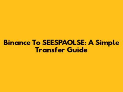 Binance To SEESPAOLSE: A Simple Transfer Guide