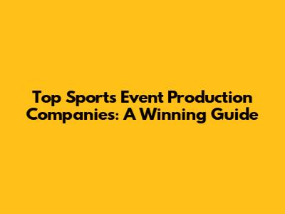 Top Sports Event Production Companies: A Winning Guide
