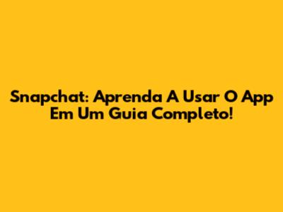 Snapchat: Aprenda A Usar O App Em Um Guia Completo!