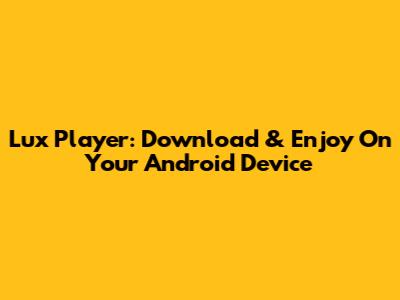 Lux Player: Download & Enjoy On Your Android Device