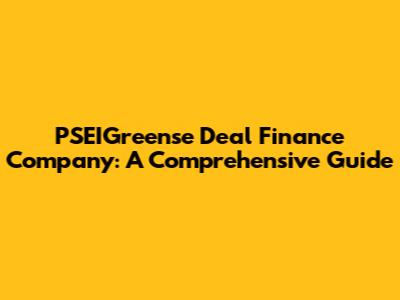 PSEIGreense Deal Finance Company: A Comprehensive Guide