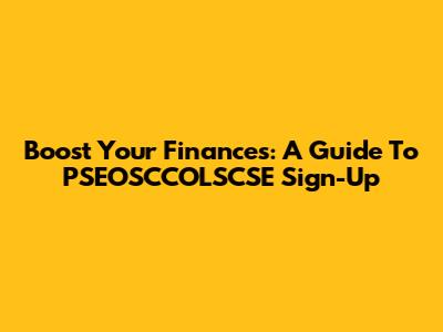 Boost Your Finances: A Guide To PSEOSCCOLSCSE Sign-Up