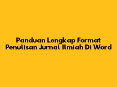 Panduan Lengkap Format Penulisan Jurnal Ilmiah Di Word