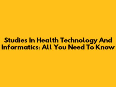 Studies In Health Technology And Informatics: All You Need To Know